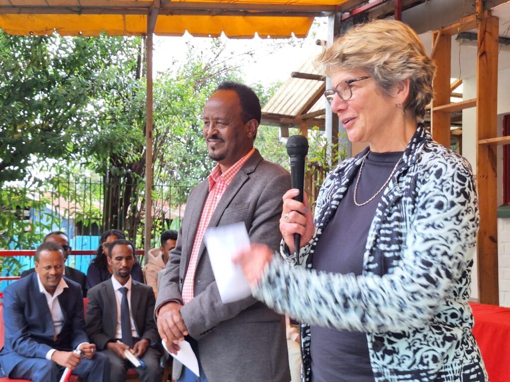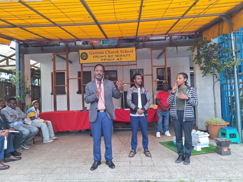 Die diesjährige offizielle Eröffnungsfeier war insofern etwas Besonderes, als wir durch die Anwesenheit des Leiters des Schulamts des 6. Bezirks, Herrn Tesfalem Aberra, geehrt wurden. Er war nicht nur Ehrengast und Besucher, sondern würdigte auch die vorbildliche Arbeit der GCS und bekräftigte sein Engagement, die Arbeit der Schule, insbesondere ihre erfolgreiche Arbeit als Modellschule für Inklusion, zu unterstützen und zu fördern.