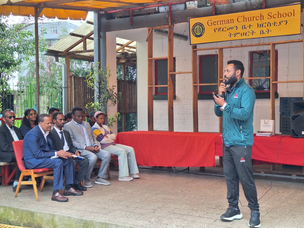 Die offizielle Eröffnungszeremonie begann mit zwei Liedern des Schulchors, eines auf Amharisch und eines auf Deutsch (So ein schöner Tag). Die Veranstaltung wurde durch die Anwesenheit mehrerer Gäste und Teilnehmer zusätzlich bereichert, darunter Mitglieder des Deutschen Kirchenvorstands, des GCS-Vorstands, ehemalige Schüler der GCS sowie Schüler der GCS, die gerade die Abiturprüfung der 12. Klasse mit Bestnoten bestanden haben. Es ist ein großes Privileg, die ehemaligen Schüler und die ganz kleinen Kinder nebeneinander zu sehen und sich an ihre Kindheitserinnerungen zu erinnern und zu zeigen, wie sehr sie ihren Aufenthalt an der Deutschen Kirchenschule mit all ihren Angeboten schätzen. Außerdem nahmen neben Lehrern und Mitarbeitern der Deutschen Kirchenschule auch Eltern von Kindern der ersten Klasse an dieser großen Veranstaltung teil.