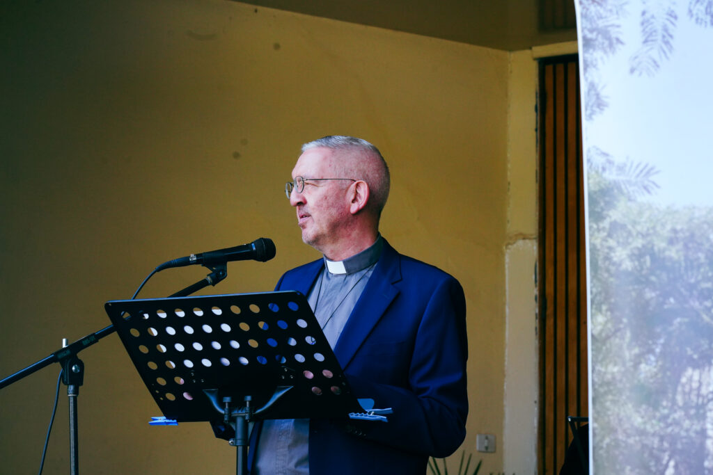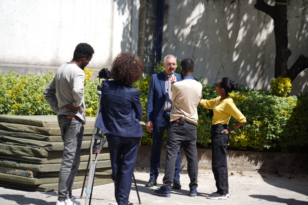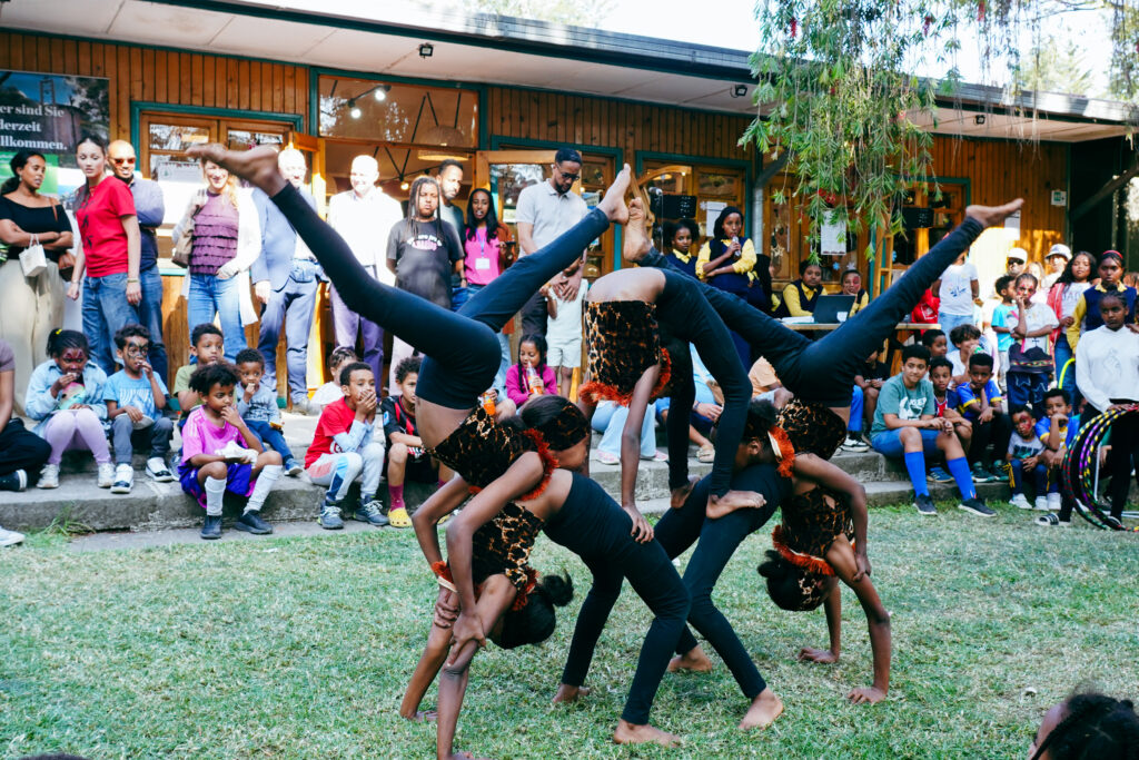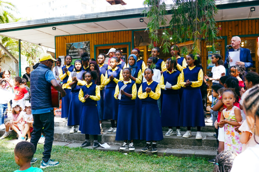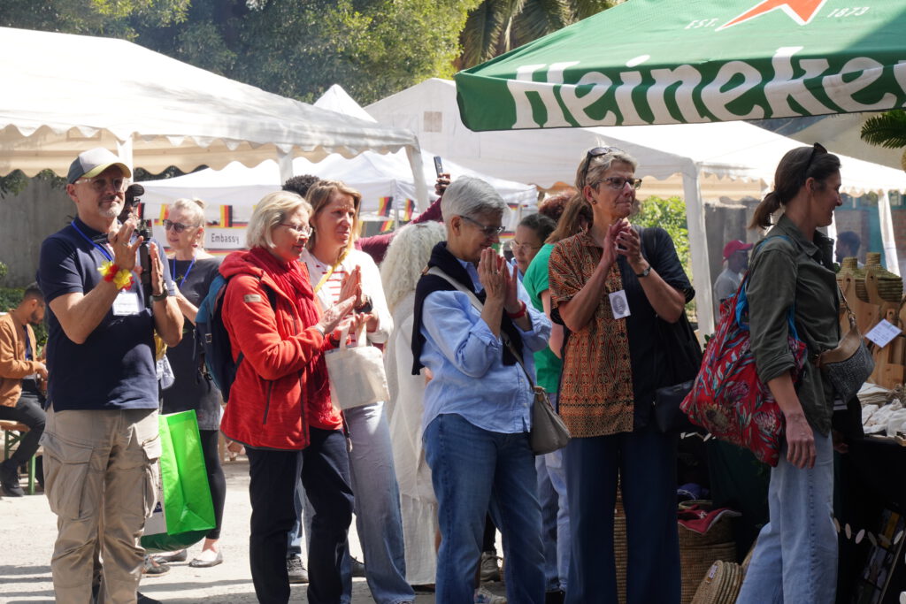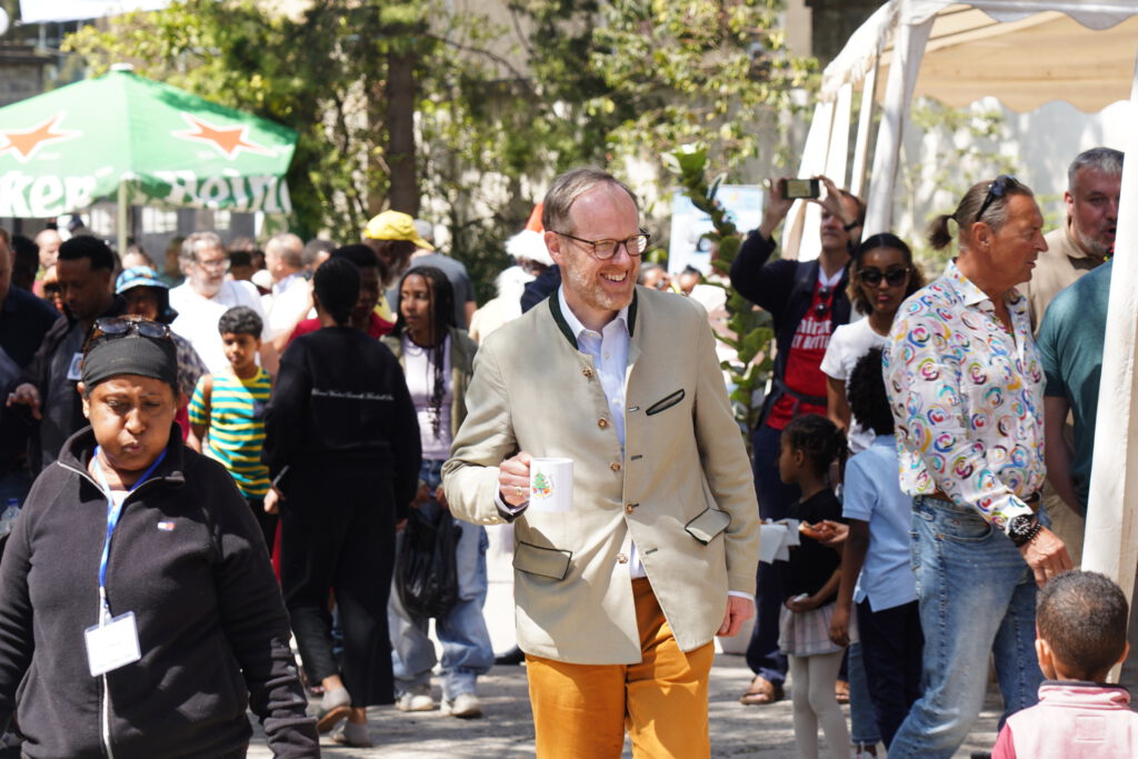 Zu Beginn um 10 Uhr gab es eine Aufführung der Addis Abeba Gymnastics Federation (Turnverband), die ja unsere Nachbarn sind, und für die vor über 20 Jahren eine Sporthalle mit unserer und mit Hilfe der Deutschen Botschaft gebaut wurde. Vor Kurzem haben wir die Kooperationsvereinbarung erneuert, denn wir dürfen nicht nur die Sporthalle, sondern auch einen grünen, ca. 10-12 Meter breiten Grünstreifen ihres Landes entlang unsere östlichen Mauer benutzen. Zudem wurde Pastor Dr. Jürgen Klein bei dieser Gelegenheit zum Schirmherr des Turnverbands ernannt, was für Kirche & Schule eine große Ehrung bedeutet. Es folgte eine Karateshow der Kinder der German Church School, die erneut das große Selbstvertrauen zeigte, welches gerade unsere blinden und körperlich eingeschränkten Kinder an unserer Schule finden. Nach der Begrüßung durch Pastor Klein sprach der amtierende Chargè d’Affairs der Deutschen Botschaft, Dr. Ferdinand von Weyhe als Schirmherr des Basars, sowie unser Schulleiter Ato Teklu Tafesse.