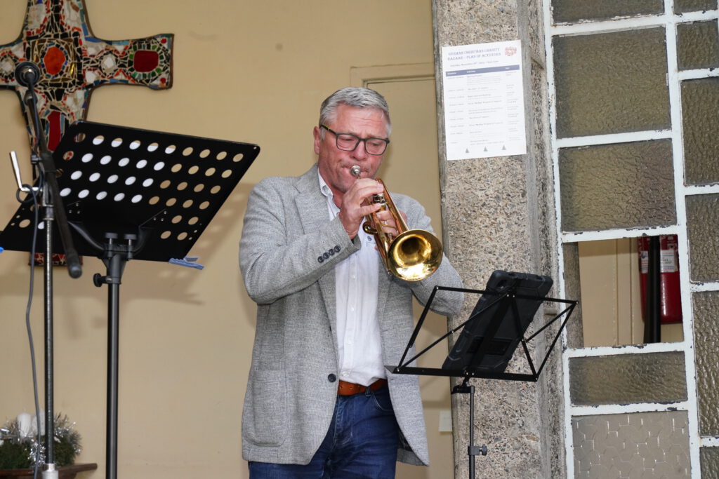 Fast immer schon seit dem Bau unserer Kreuzkirche im Jahr 1966 gab es einen Basar, zuerst in Verbindung mit dem Erntedankfest, dann seit mehreren Jahrzehnten als Weihnachtsbasar. Dieser Basar ist eine Unterstützung unserer Kirche für die Sozialarbeit, die von ihr getragen wird: die German Church School. Rund um unsere Kirche in der grünen Oase haben in diesem Jahr am 29. November 65 Stände Platz gefunden. An ihnen wurden Artikel aller Art aus dem Kunstgewerbe und von unterschiedlichen Organisationen angeboten.