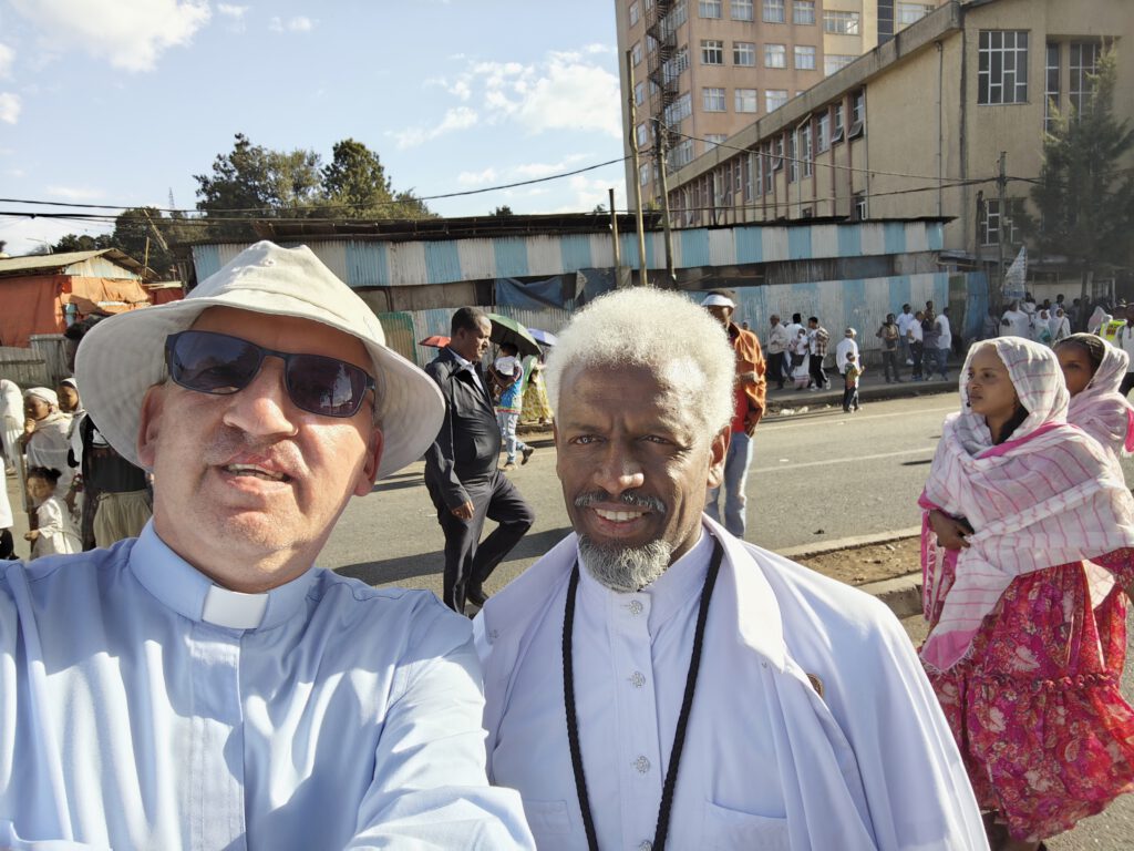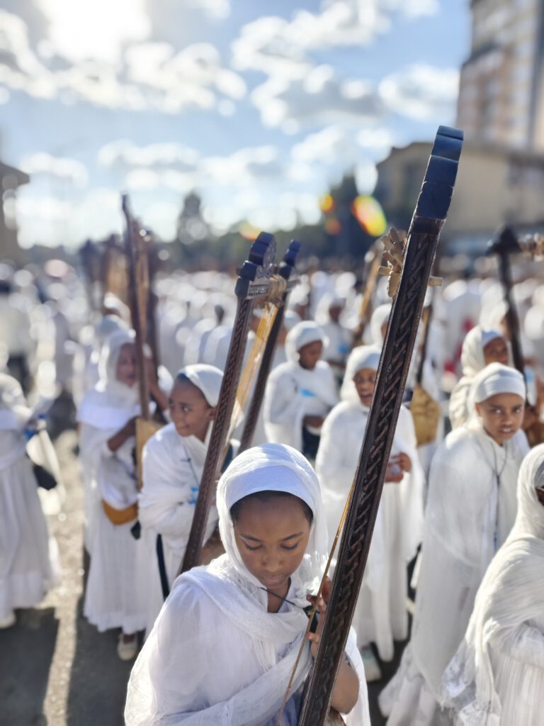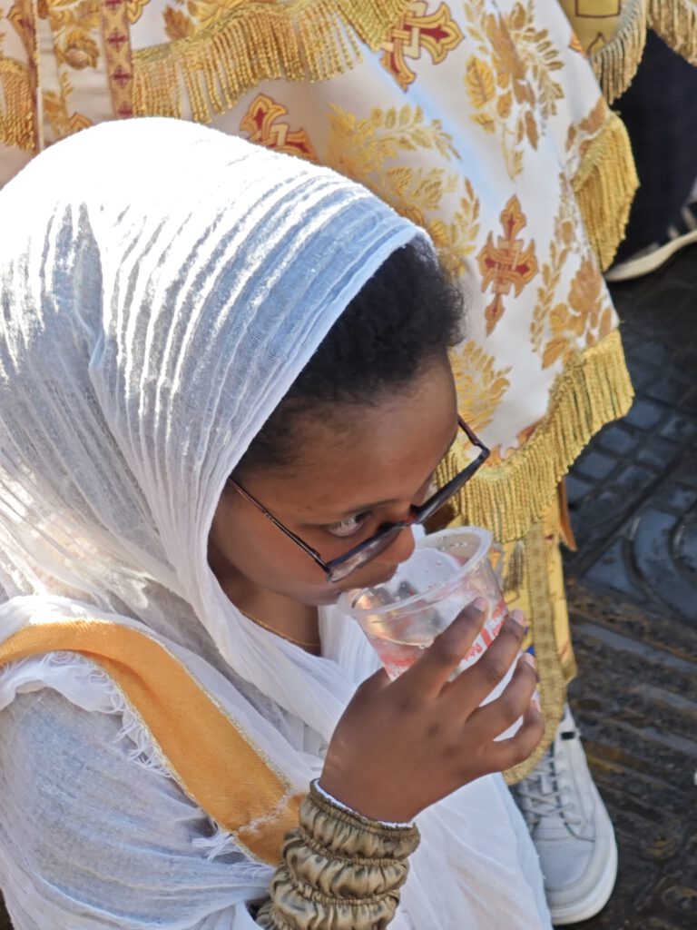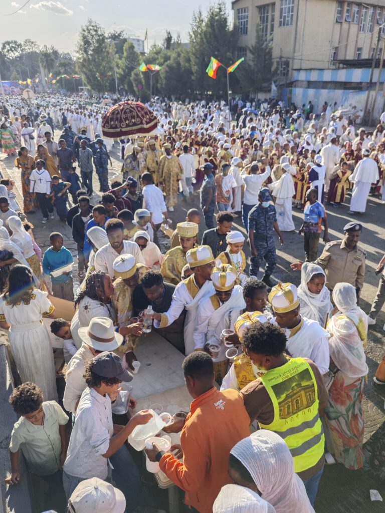 Wie in jedem Jahr, so fand auch diesmal das große Timqätfest unserer äthiopisch-orthodoxen Geschwister statt – und am ersten Tag, dem Tag vor dem Hauptfest auf dem Jan Meda Feld, fand „Kätära“ statt, der Tag, an dem die Repliken der Bundeslade (Tabot) zur Wasserstelle auf dem Jan Meda Feld neben unserem Grundstück gebracht werden.