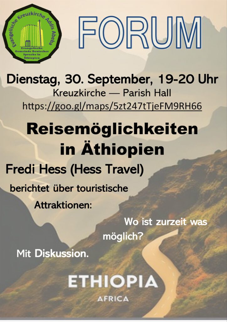 FORUM: Reisemöglichkeiten in Äthiopien / 30.09.2025, 19 Uhr, Parish Hall